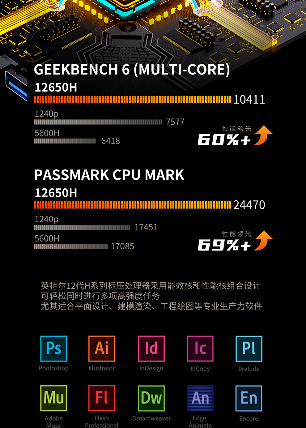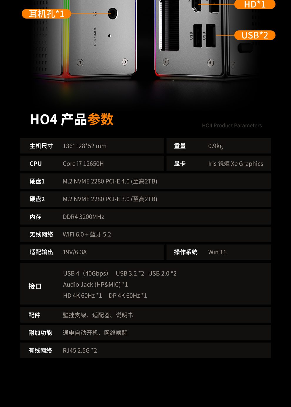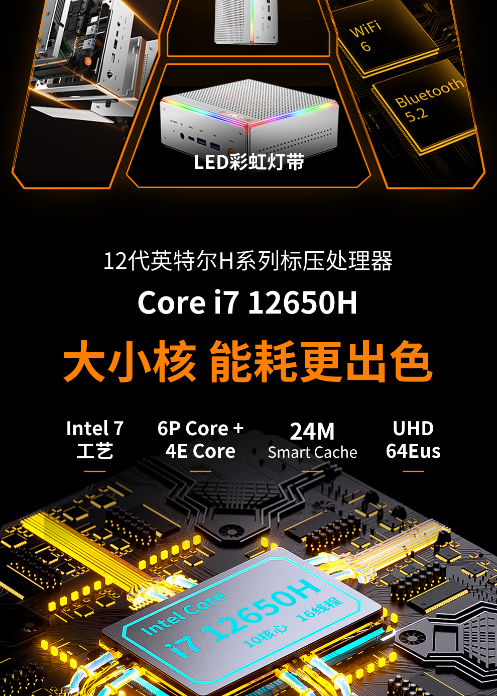 | CPU | Intel 12650H / 10核 / 16线程 / TDP: 45W |