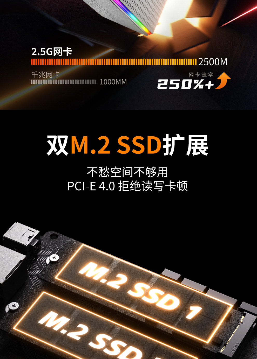 | 硬盘 | 2*M.2 NVME SSD 2280 512G 最大支持4TB |