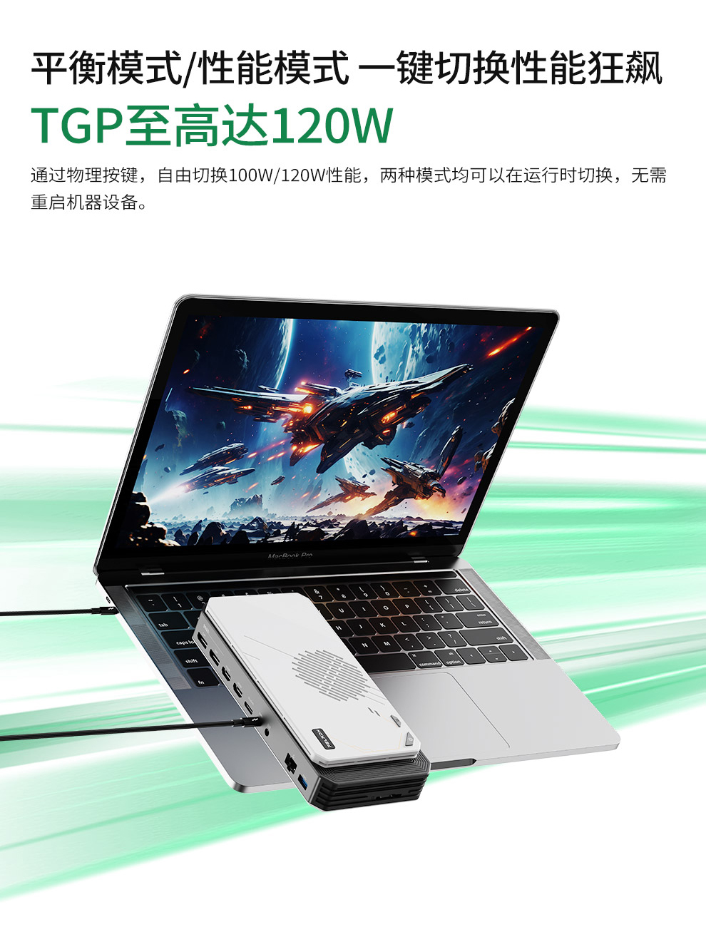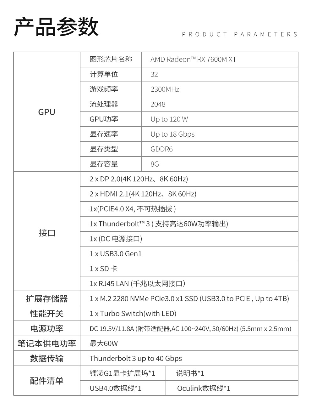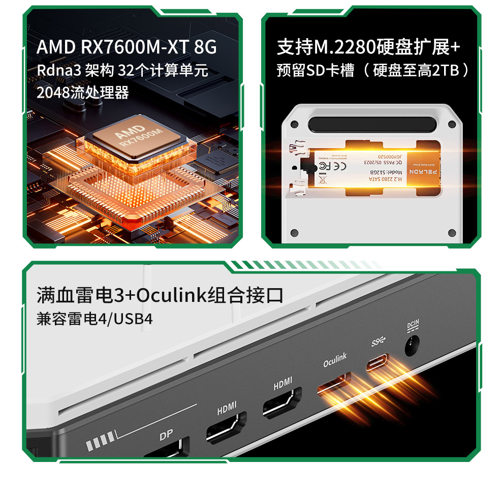 1*Thunderbolt™ 3 ( 最高支持60W输出),1*OCuLink(PCIE4.0 X4,不可热插拔)
