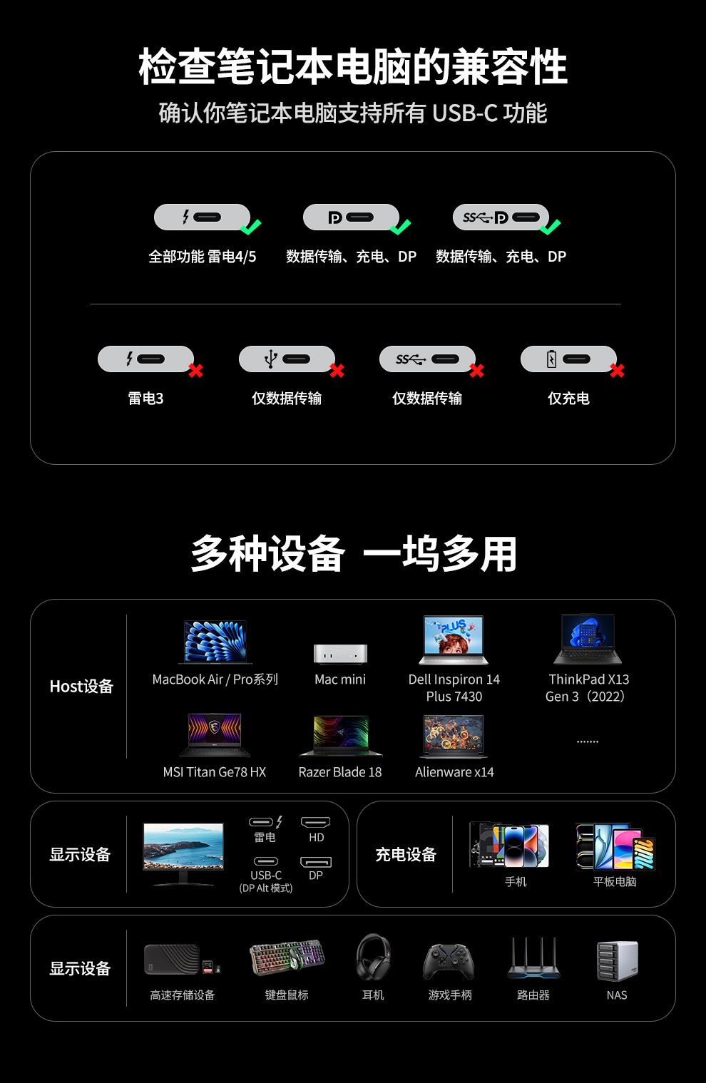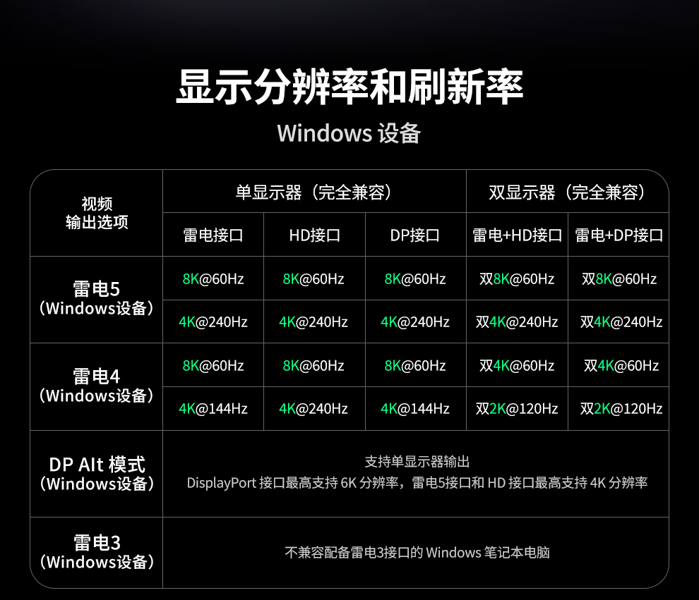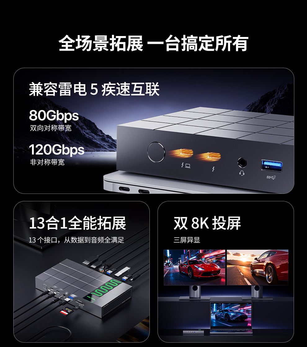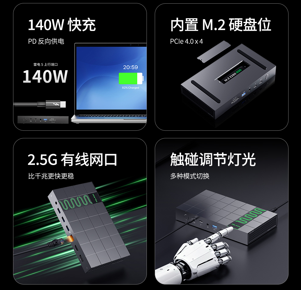 | 兼容性 | 兼容Windows/Mac操作系统,设备需搭载雷电3/雷电4/雷电5/USB4接口 |