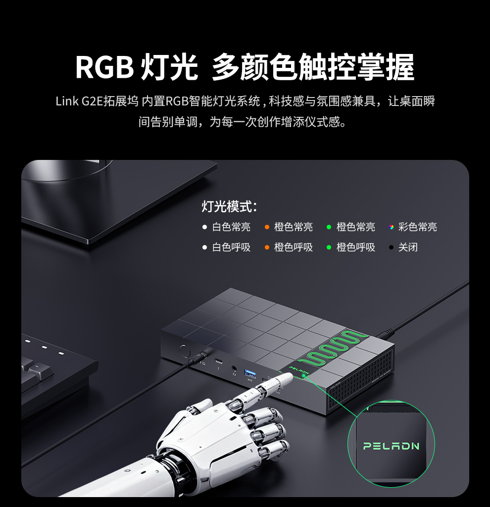 | RGB灯带 | 支持(触控切换:白色常亮/白色呼吸/橙色常亮/橙色呼吸/绿色常亮/绿色呼吸/彩色渐变/关闭) |