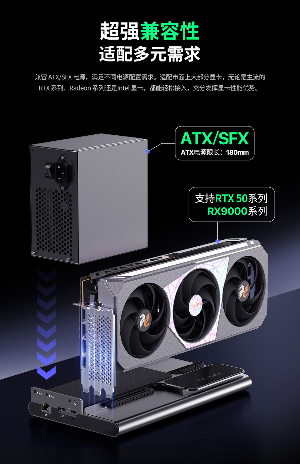 | 系统要求 | 支持Windows 10 /11系统,Linux系列 *使用时⾸先需要安装Intel Thunderbolt(雷电)控制器驱动,安装完毕后再下载安装对应的显卡驱动才能使用。 |