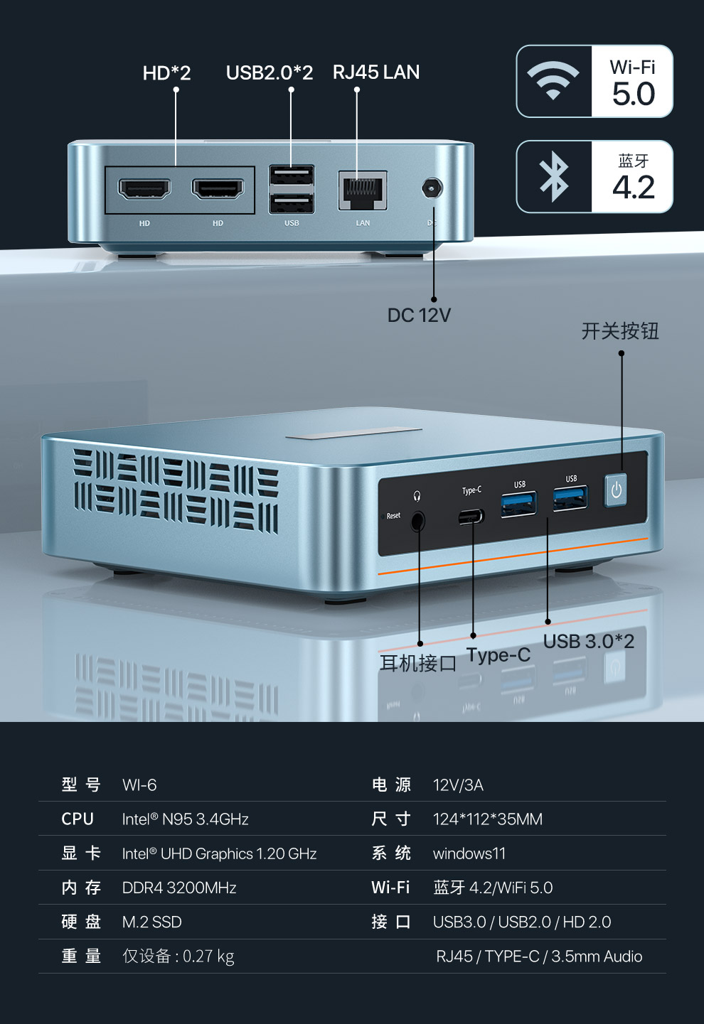 | Wi-Fi | 蓝牙4.2 / WiFi 5.0 |