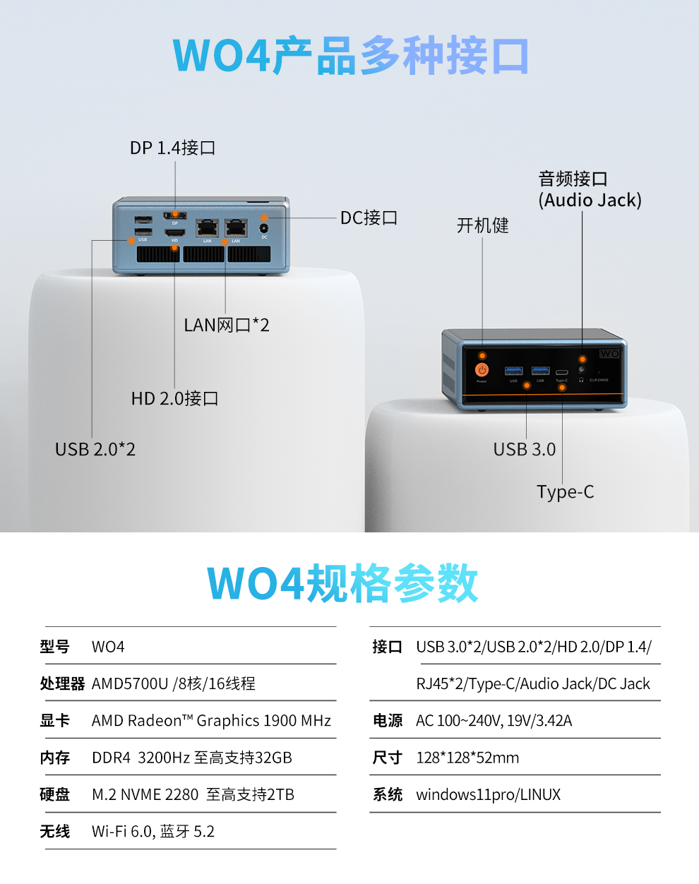 | 1*HD 2.0 4K 60Hz,1*DP 1.4 4K 60Hz | |