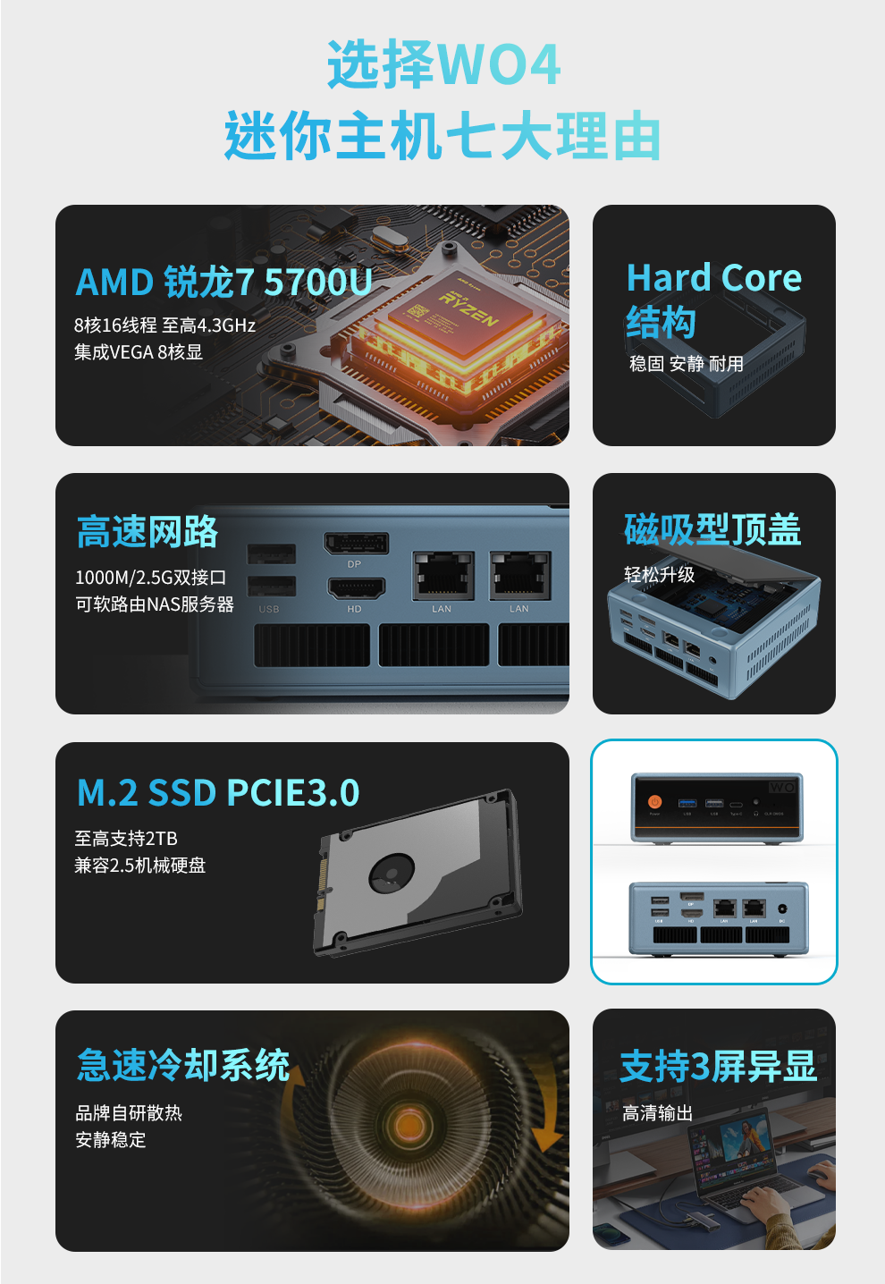 | SSD PCIE3.0 | M.2 NVME SSD 2280 512G 最大支持2TB |