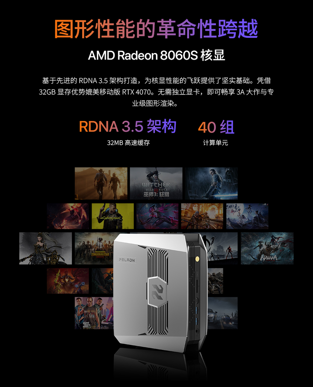 | GPU型号 | Radeon 8060S Graphics, 40核, 显卡最大核心频率2900MHz |